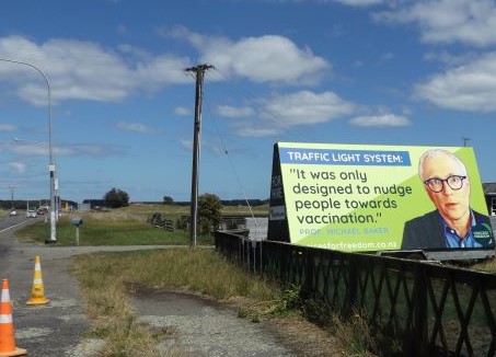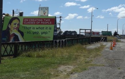 It was while I was travelling north that I was driving thru a small town, and there was a little Maori lady bravely doing a protest all by herself next to a vaccine clinic. I turned the car around and spent a bit of time supporting her. About a quarter of the cars going past showed their support, with none against, while I was there.