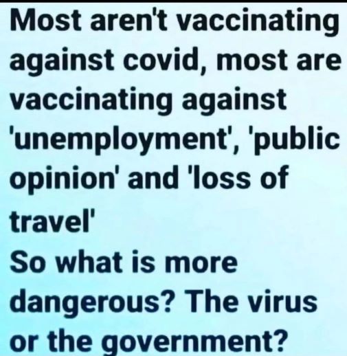 All of this has led to a lack of trust and confidence in society as a whole, which is why the unvaccinated have got together in small groups all over the country in the first place. Some are now talking of a parallel economy (effectively an economy that is separate from the state)