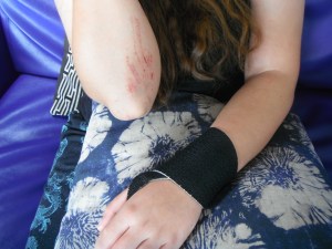 The third day ended with a crash. I made the mistake of heading off in front of her down a gravel road and she tried going faster than she’s used to. She has different motivations than her sister and I should have forseen that.