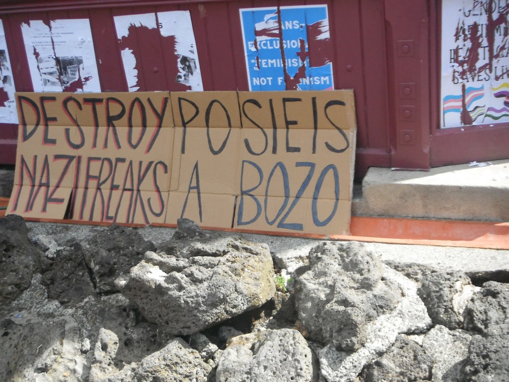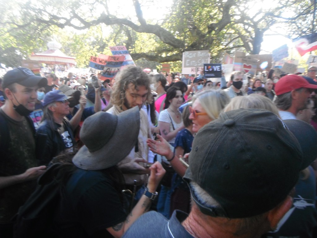 It was a noisy and rowdy affair, and it was hard to work out which side was which. The rainbow crowd appeared to be mostly university students. The older people amongst them were mostly their parents. Most of their signs were confusing and didn’t make sense with what they were doing. Some of their signs said ‘peace and love’, while they were doing the opposite..