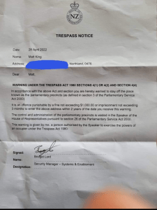 He was one of the few politicians who fronted up at the Wellington anti-mandate protest, and got a trespass notice served against him for his trouble.