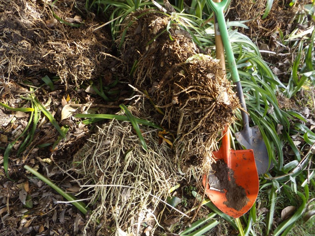 Agapanthus’es are hard work. They need to be dug out of the ground while making sure you have got all the rizhomes, otherwise they will grow back.